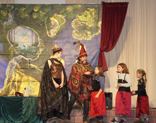 Am 19. März besuchte die Kölner Opernkiste unsere Schule. Alle Klassen folgten gebannt der Geschichte von Tamino, Pamina, Papageno und Papagena. Mit ihren herausragenden Stimmen sowie ihrem schauspielerischen und komödiantischen Talent begeisterten die drei Künstler ihr Publikum, dass sie bei ausgewählten Liedern ausdrucksstark unterstützte. Sechs Kinder der vierten Klassen wirkten mit auswendig gelernten Texten in der Zauberflöte mit. Mit tosendem Applaus verabschiedete sich die Schule und bedankte sich bei den Künstlern der Kölner Opernkiste.